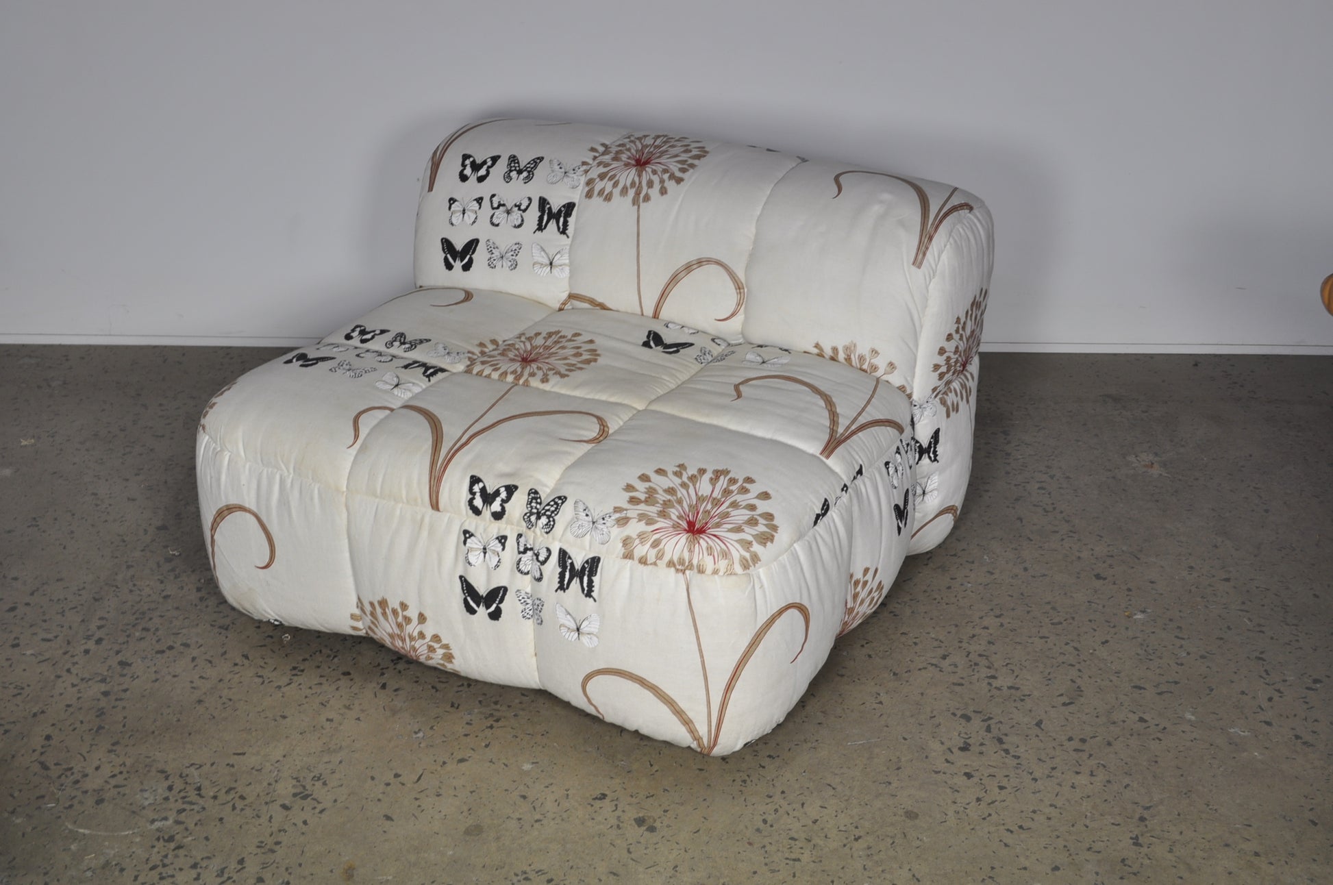 Materials - Metal and wooden frame with Polyurethane foam and Polyester fabric.