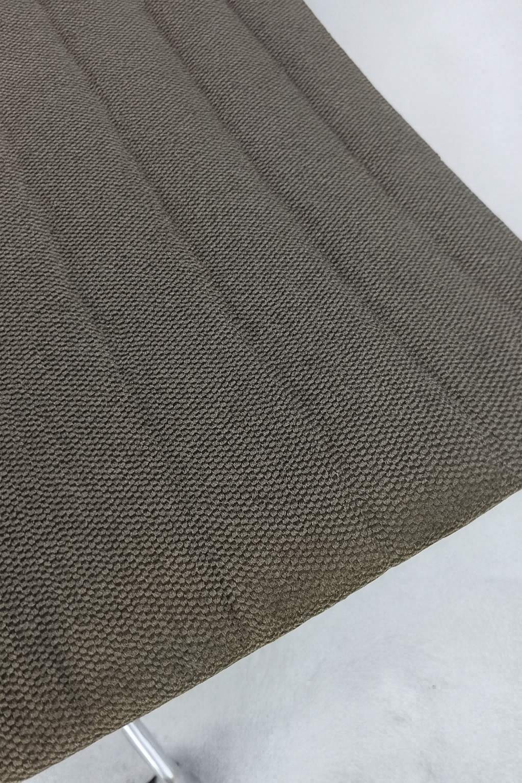 Description - Eames Aluminum Group Management Chair by Herman Miller. The chair features the classic ribbed sling upholstery, floating seat design, and polished aluminium frame that has become synonymous with the Eames Aluminum Group collection. Note these are the armless style. No screw holes etc.