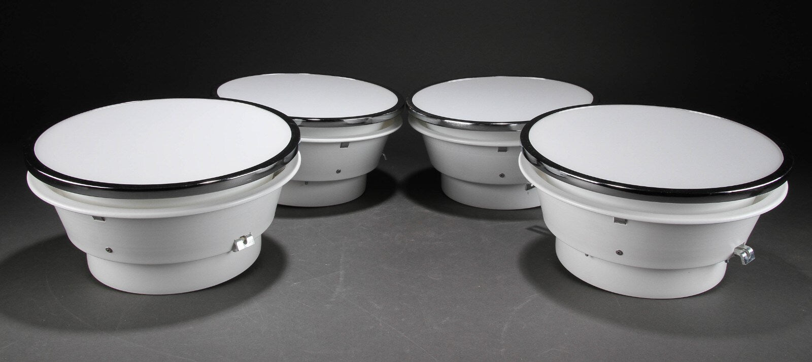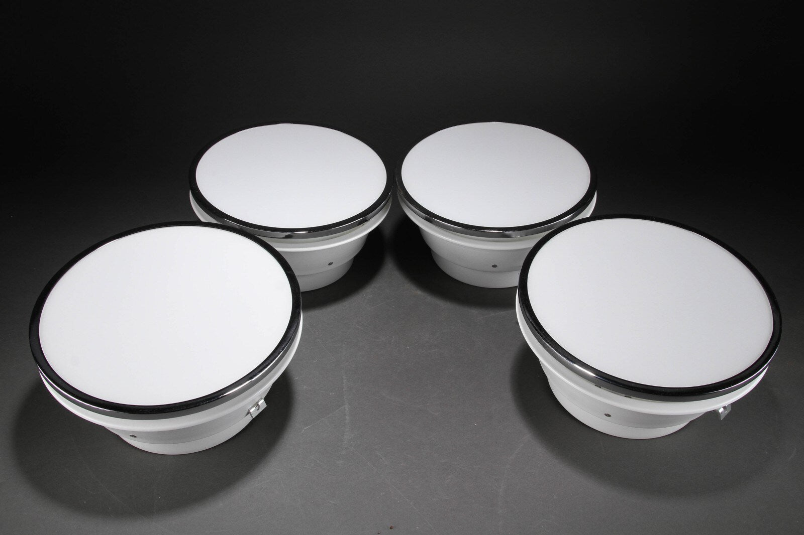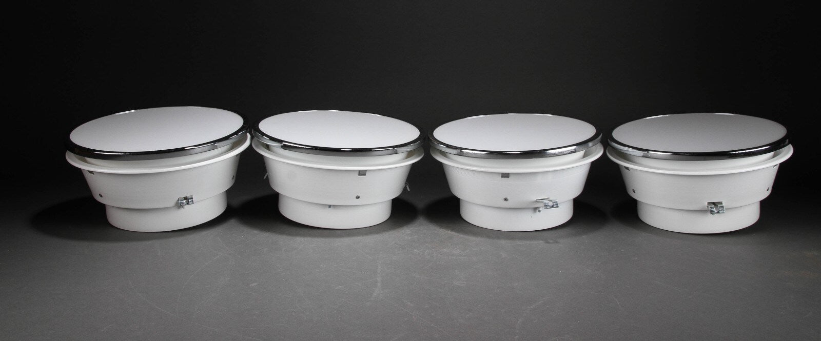 Description – Designed in 1955 for the Munkegaard School in Denmark, the lamp features a shallow domed opal glass shade that produces soft, even illumination. A quiet architectural light, intended to integrate seamlessly into ceilings and corridors while providing a warm ambient glow.